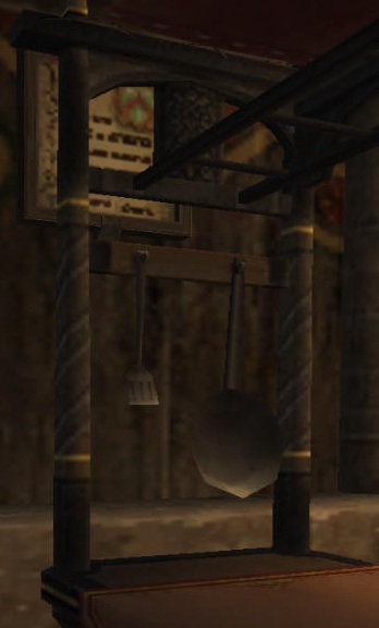 台の上にのっているのが調理ギルドの納品ポイントと交換できるシチューポットなんですが、慌ててたもんで、反対側に設置してしまったのはナイショw