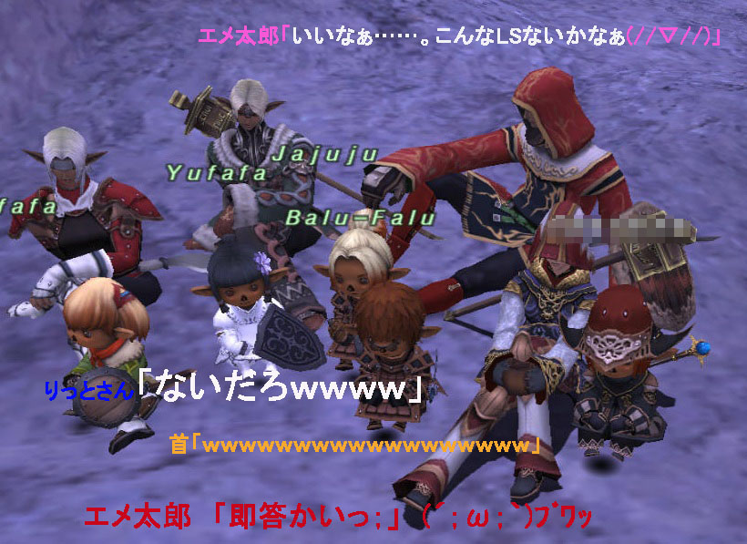 無論エメ太郎はボヤの苔むす地に額を擦り付けんばかりの勢いで謝り倒し、タルさんズは/comfortしまくりで、5人総がかりでPTを遠慮しようとしたヒュムさんを引き止めたのでした……。