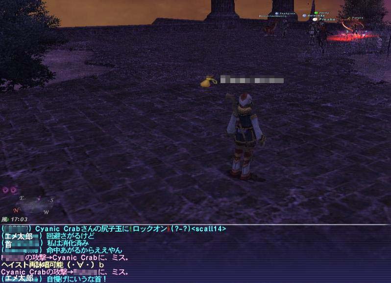 カニゾーンはボスの巨大ガニ3匹のほかに、雑魚である青カニ9匹、赤カニ9匹のカニざっくざくエリアなのですが、大量リンクしたときにゼフィさんが、2匹をペットと一緒に引き受けてくれて、2人ぶんの働きをしてくれていました。(囮役でソロで戦っていたぺろさんも同様)