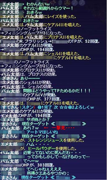 23:38 後方から矢を放ち、地道に削りに徹していたゼフィさんが倒れ、エメ太郎にタゲ。短い間でしたが久々にマラソンさせていただきました……(誰かわかりませんが、この時タゲ取ってくれた人、心の底からありがとう!)。